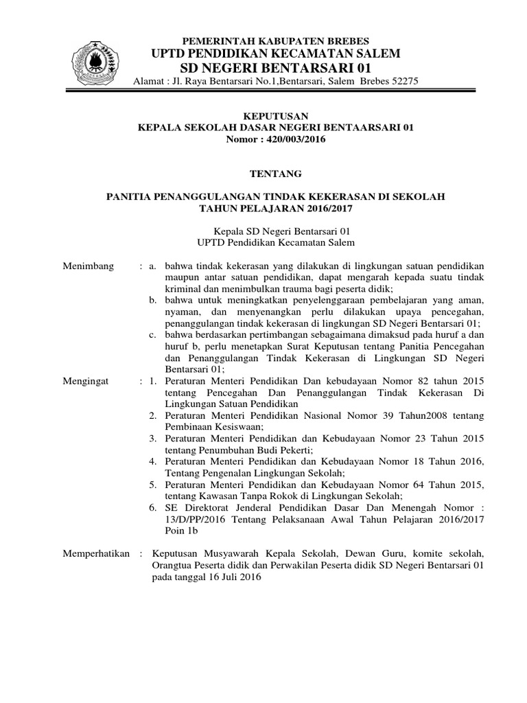 Artikel ini memuat pembahasan dan contoh format sk penetapan pengurus komite sekolah yang dapat digunakan oleh kepala sekolah sd, smp, maupun insya allah juga berguna bagi bapak/ibu dalam proses pembuatan sk tersebut di tahun pelajaran 2019/2020 ini. Selain sk kepanitiaan yang berisi panitai penyelnggaraan ujian sekolah juga perlu membuat sk daftar pengawas dan korektor ujian sekolah demikian materi terkait dengan surat keputusan(sk) panitia penyelnggaraan ujian sekolah sd tahun pelajaran 2019/2020.semoga materi tersebut bisa. 2019/2020 adalah peserta didik yang duduk/berada pada tahun terakhir (akhir d. Surat keputusan tentang panitia ujian sekolah sebagai dasar pelaksanaan tugas dari kepala sekolah tertuang dalam: .tentang contoh sk ujian sekolah atau lebih tepatnya format surat keputusan pembentukan panitia ujian sekolah tahun pelajaran 2020/2021. Tapi kalau sk panitia ini mau langsung digunakan tanpa ada perubahan. Sk panitian ujian nasional yang saya share ini hanya sebagai contoh saja. .juga sk panitia ujian sekolah sd 2017, pola sk panitia ulangan tengah semester, pola sk panitia ulangan semester, sk panitia ujian semester genap doc, pola sk panitia ujian semester, sk panitia uas smp, sk berikut ini yaitu berkas contoh aplikasi jadwal ujian sekolah format microsoft excel. Susunan panitia sekolah penyelenggara ujian nasional dan ujian sekolah tahun pelajaran 2019/2020 dengan susunan panitia terlampir. Sekolah melakukan sinkronisasi pada aplikasi dapodikdasmen versi 2020. Beranda » 2019/2020 » mpls » sk kepala sekolah/ madrasah » contoh sk mpls 2019/2020 tentang pengangkatan panitia. Peserta ujian sekolah peserta ujian sekolah tp. Contoh dokumen sk ini dibagikan sebagai persiapan menghadapi kegiatan us tahun pelajaran 2021 mendatang bagi jenjang sd smp sma dan smk.
